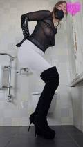 My most torturous video so far... I held my shit for over 50 hours and took a bunch of very strong laxatives. I was bound with my hands behind my back, choking and gagging on a dildo gag. I was wearing my beautiful new white leggings and my gorgeous new high stiletto heel boots. If that wasn't extreme enough, a full large enema bag has filled my asshole. I can barely walk from desperation, my screams and begs are muffled by the dildo gag. When I'm released I helplessly stumble to the toilet, trampling in a desperate attempt to keep in my massive load of liquid shit. My boots clatter so loudly on the floor that the neighbours might complain. But I just can't help it...